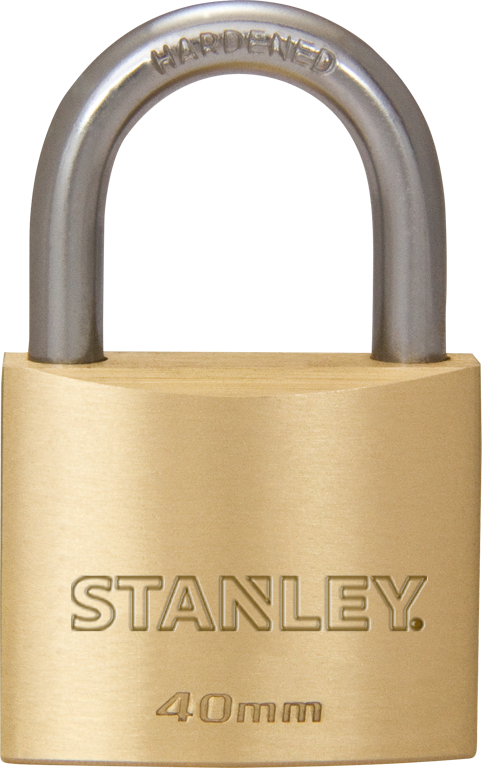 Candado Stanley de latón tipo barril 40 mm blister.