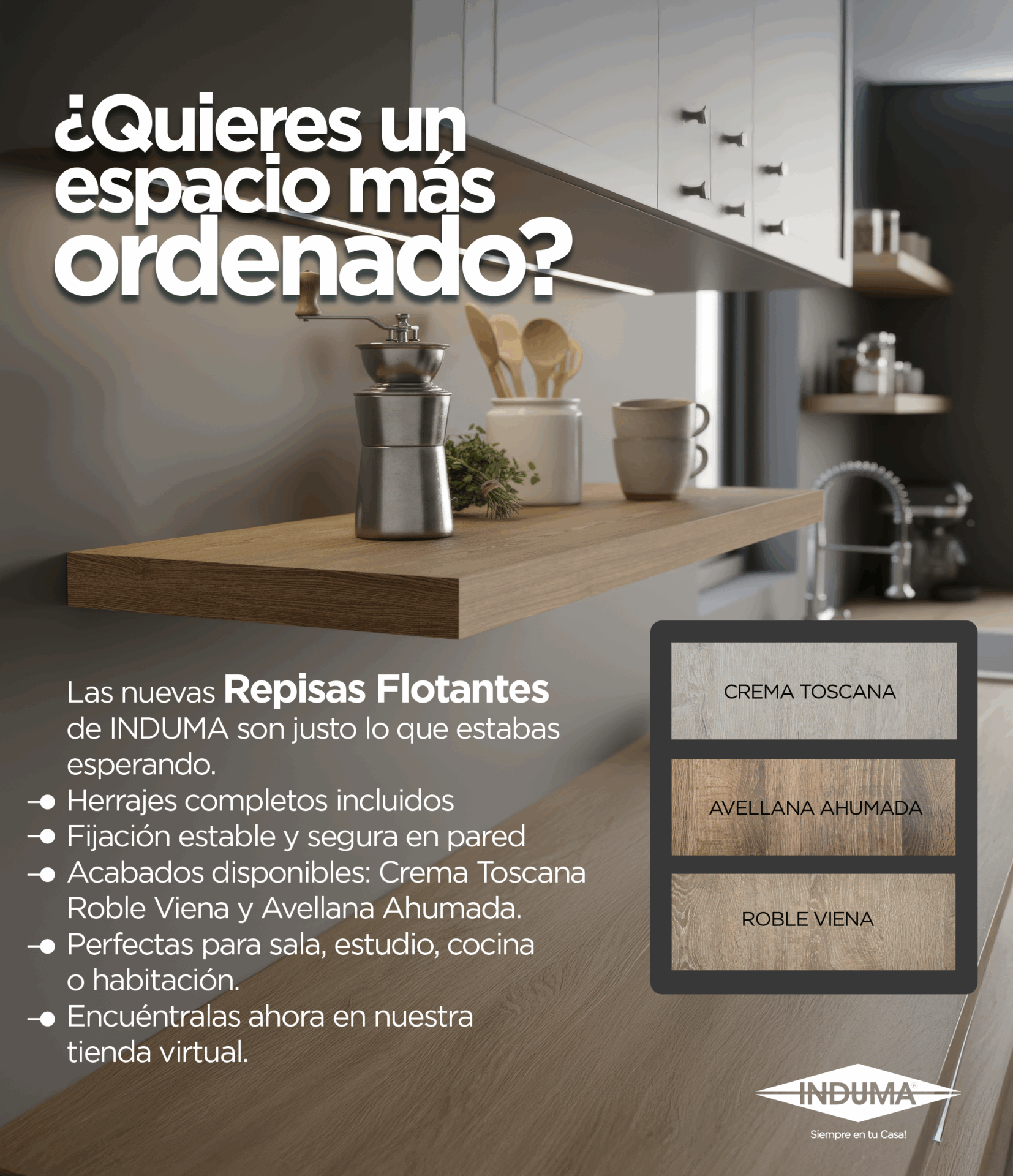 Las nuevas Repisas Flotantes de INDUMA son justo lo que estabas esperando. Perfectas para sala, estudio, cocina o habitación